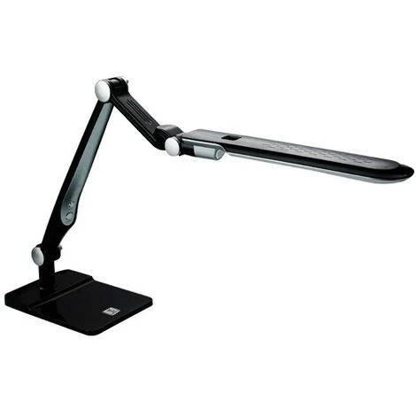 Une lampe de bureau noire, moderne. Elle possĂšde des touches tactiles on/off, mode et et 2 flĂšches pour rĂ©gler l’intensitĂ© de la luminositĂ© entre 6000K et 3300K.