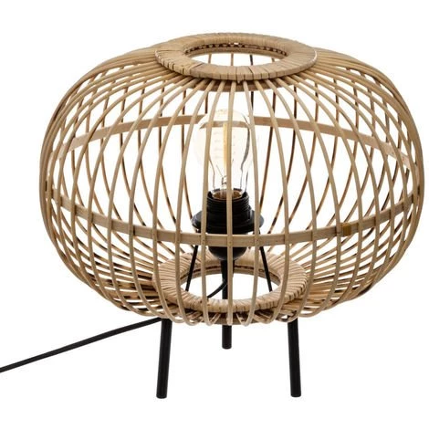 Atmosphera – Lampe à Poser en Bambou Trépied en métal H 31 cm (-) Dimensions : D. 34 x H. 31 cm –