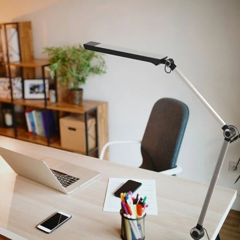 ORIENTABLE : le bras pivotant de cette lampe de bureau LED noir-argent est en aluminium brossé. Il peut être orienté et ajusté en hauteur afin d’orienter l’éclairage selon vos besoins. La tête de la lampe peut être tournée à 90 degrés vers la gauche et la droite.