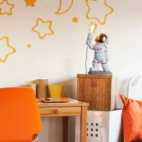 Lampe à poser astronaute en résine. Petite lampe légère et facile à transporter, à emporter avec vous partout où vous allez. Pour tous les amoureux de l’espace. Hautement recommandé pour les chambres d’enfants, comme lampe de bureau spatiale, pour les hôtels, les bars, les restaurants, les cafés, et toute pièce intérieure.