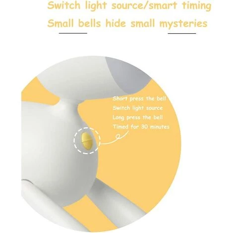 Opération: lorsque la lumière est allumée, tournez simplement la queue de renne pendant un moment pour ajuster la luminosité; 30 minutes de sommeil Appuyez sur le bouton jaune sous la tête pour allumer le mode TIMER.