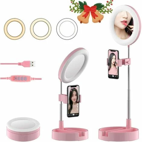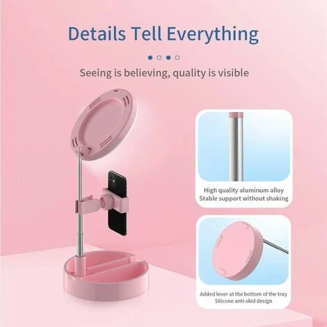 Soyez le premier à laisser votre avis sur “Cisea Selfie Ring Light Avec Support De Téléphone, Lampe De Bureau LED Pliable Dimmable Phone Make Up Ringlight Stand Miroir De Maquillage Extensible TIK Tok YouTube Video Vlog Enregistrement Photographie Tiktok Live Stream (Rose)” Annuler la réponse