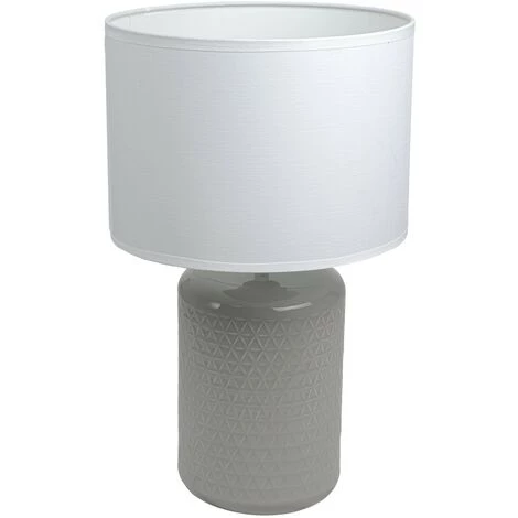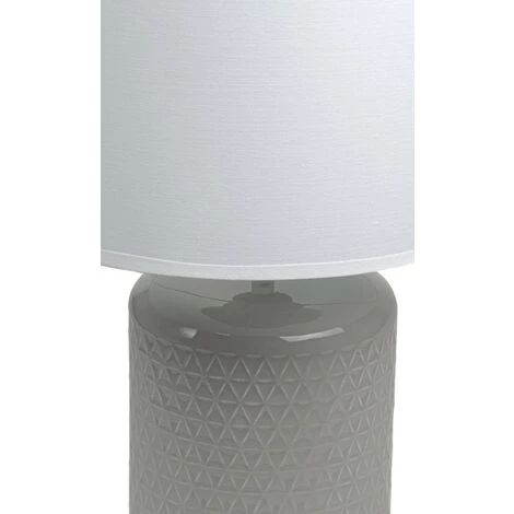 Lampe à poser, pied en céramique motifs losanges et abat-jour tissu blanc