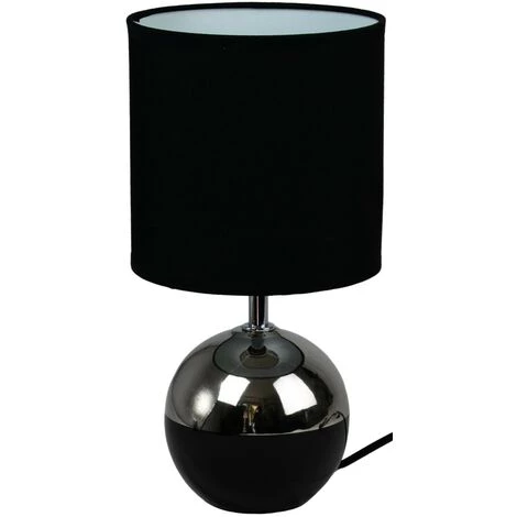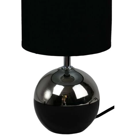 Petite lampe à poser, pied en céramique brillante noir et argent et abat-jour tissu noir