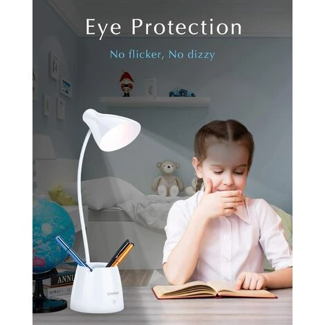 La hauteur de lampe bureau enfant est de 33 cm, la largeur est de 10,5 cm et la hauteur de la base est de 8,5 cm. Par rapport au câble de charge 1M dont la plupart des lampes de bureau sont équipées, cette lampe de bureau est équipée de deux câbles de charge de 1,5M de long,pratique à utiliser pendant le chargement.La conception en col de cygne peut être pliée à 360 ° pour un rangement facile.
