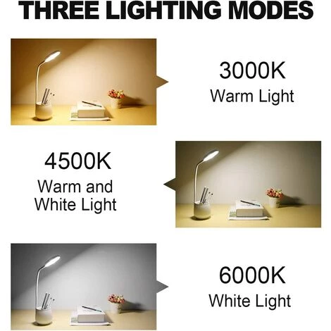 Notre lampe de bureau LED est équipée d’une batterie 1250mAh qui est suffisante pour environ 6 heures d’utilisation. Il faut environ 3 heures pour que la batterie soit complètement chargée. »