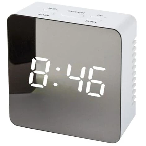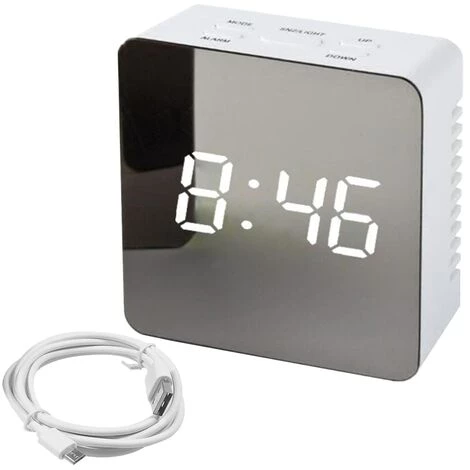 Description:1. Cinq boutons de fonction: MODE, alarme, SNZ/lumière, haut, bas.2. Lumière LED: lors du chargement ou de l’alimentation de la batterieGrâce au câble USB, la lumière LED est allumée.3. Utilisation: lorsque la batterie est en charge, appuyez sur le bouton SNZ / LIGHT,La LED s’allume pendant 5 secondes. Lorsque vous utilisez un câble USB,Le voyant LED s’allume toujours.4. Conception Simple: le mini réveil miroir élégant et simple peut décorerVotre chambre, salon, et peut également être utilisé comme miroir en cas de besoin.5.Taille: environ 8.1*8.1*3.4cm/3.19*3.19*1.34 pouces (L * L * H)Spécification:Nom du produit: horloge numérique miroirCouleur: BlancMatériel: ABSTaille: environ 8.1*8.1*3.4cm/3.19*3.19*1.34 pouces (L * L * H)Affichage de l’heure par LED: format 12/24 heures en optionAffichage de la température: ℃ ou ℉Plage de température: 0 degrés Celsius-50 degrés CelsiusRéglage du mode nuit: 18:00-06:00:Alimentation par: 3 piles AAA (non incluses)Le forfait comprend:1 pièce * horloge numérique miroir1Pc * câble de chargement USB1 pièce * manuel en anglais