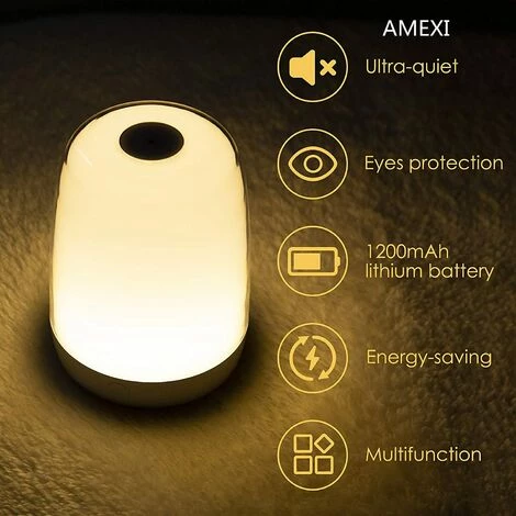 Veilleuse rechargeable : avec la batterie intégrée de 1200 mAh, la lampe de nuit peut être utilisée pendant une longue période. Ou vous pouvez simplement profiter de la lumière chaude pendant le yoga, le camping ou le dîner aux chandelles à l’intérieur ou à l’extérieur.