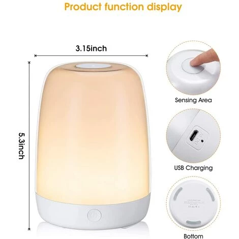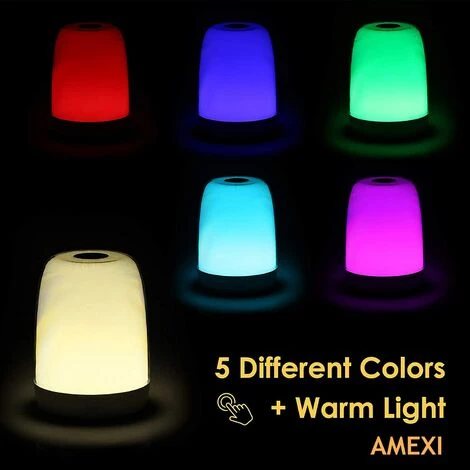 3 modes d’éclairage + 5 couleurs différentes : la lampe de chevet tactile est à intensité variable de sorte que les 3 modes d’éclairage (faible, moyenne et luminosité) peuvent être modifiés par simple pression du dessus. 5 couleurs différentes : rouge, vert, violet, bleu clair, bleu foncé et dégradé de couleur, changement de couleur.
