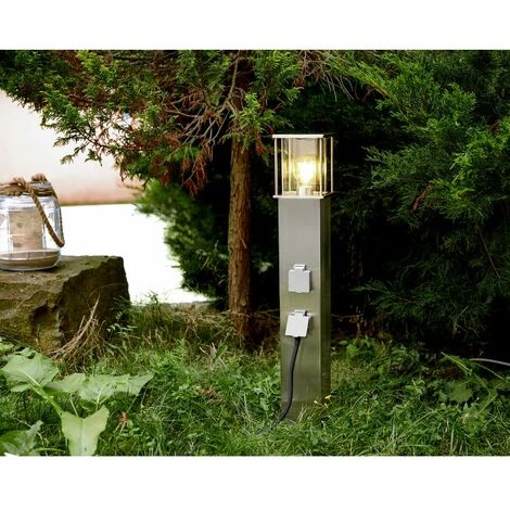 Lampe de stationnement Heitronic 37404 RHODES E27, max. 12 W, 2 prises intégrées, IP44