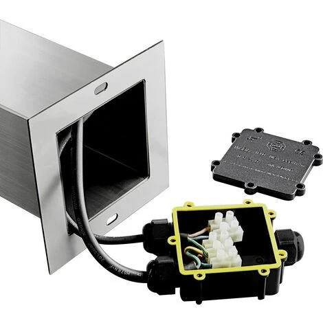 Corps en acier inoxydable (épaisseur du matériau : 1,8 mm). Couvercle transparent en polycarbonate résistant aux UV. Adapté pour ampoule E27. Avec prises de sécurité Ce texte a été traduit par une machine.
