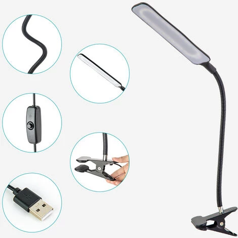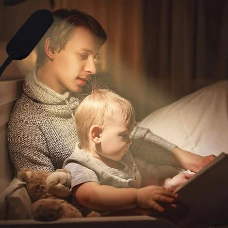 Col de cygne flexible à 360 ° et alimentation USB (adaptateur non inclus) : avec le col de cygne flexible, vous pouvez facilement ajuster le clip et diriger la lumière où vous le souhaitez. Le câble USB peut simplement être connecté à un port USB disponible (ordinateur portable/ordinateur de bureau/alimentation mobile/adaptateur USB) pour alimenter la lampe. Veuillez noter : seul l’adaptateur 5V/2A peut être utilisé, sinon le bouton de commande et la lampe de lecture seront endommagés.