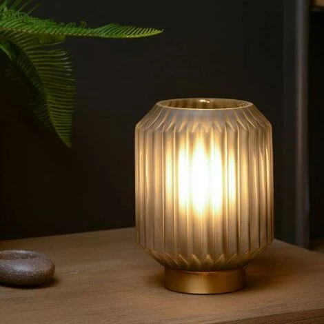 Lampe SUENO — Verre dépoli Fumé / Or Mat – Lucide 45595/01/51. – Hauteur : 17 cm. – Longueur : 13 cm. – Largeur : 13 cm. – Puissance : 40W . – Culot : E14 . – IP : 20 . – Nombre d’ampoules : 1 . – Classe d’isolation : 1 . – Voltage : 220 V. – Poids brut : 0,56 kg kg.