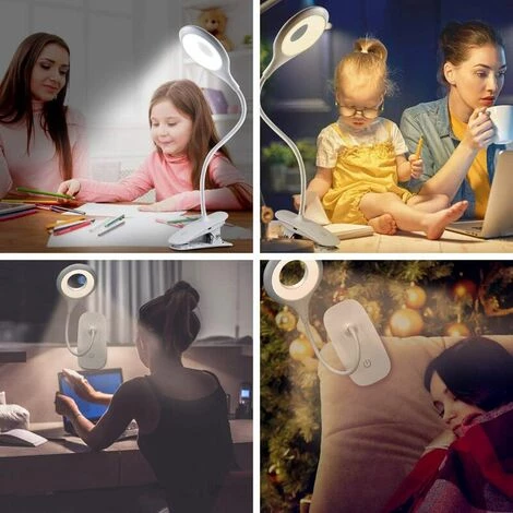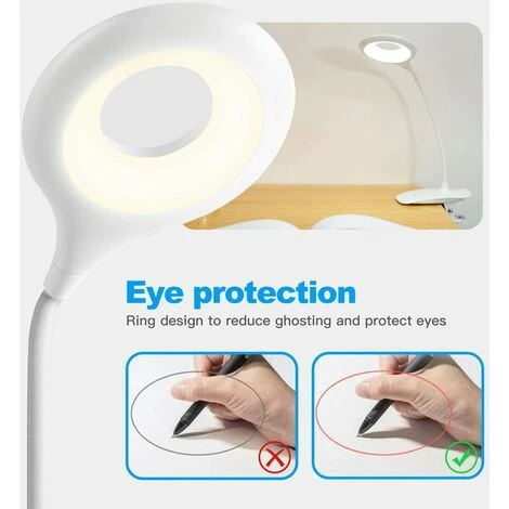PROTECTION DES YEUX – Lampe de lecture à pince,tête de lampe circulaire pour simuler la lumière naturelle, douce et non éblouissante, la lumière est réfractée à plusieurs reprises, entrer dans l’œil est plus uniforme, appelé principe de réflexion diffuse. Conçu pour aider ceux qui lisent et travaillent des heures par jour à réduire la fatigue oculaire.