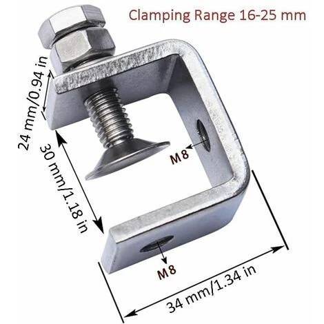 - TAILLE APPLICABLE: Longueur de la pince en C 34MM/1,34 pouces, largeur 24MM/0,94 pouces, ouverture 30MM/1,18 pouces, plage de serrage 16-25 mm/0,63-0,98 pouces.