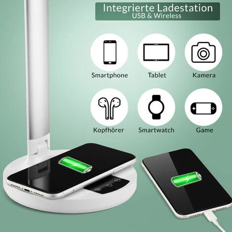 Pour recharger votre smartphone, placez celui-ci tout simplement surla base de la lampe. Grâce à son port de chargement USB 5V 1A d’autres appareilspeuvent également être chargés.