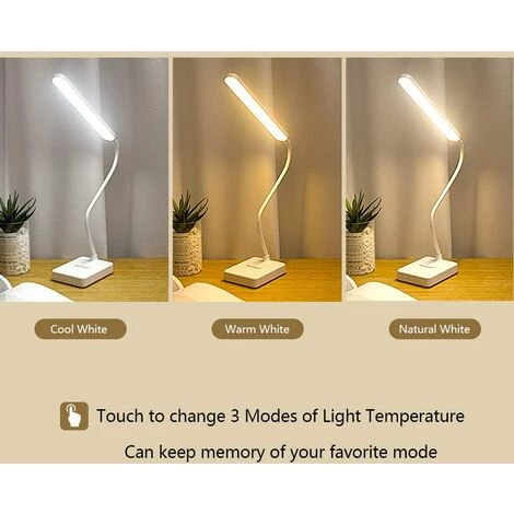2. 【Contrôle tactile pour changer 3 modes de température de la lumière, 6 lampes de lecture de bureau réglables en luminosité】 : blanc froid, blanc chaud, lumière blanche naturelle. LED dimmable luminosité réglable, bonne lampe de bureau lampe de lecture pour le chevet de la chambre à coucher