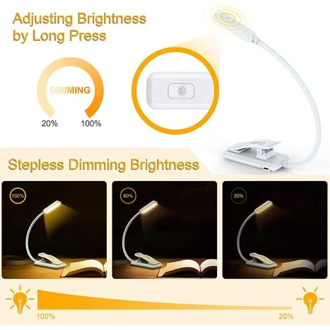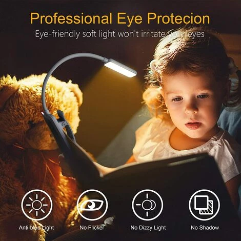 Lumière LED Douce-Protection Vos Yeux: La lampe de livre adopte une source de lumière LED non éblouissante et non scintillante, qui peut protéger les yeux au maximum lors de la lecture. Vous apporter un grand confort et éviter la fatigue oculaire.