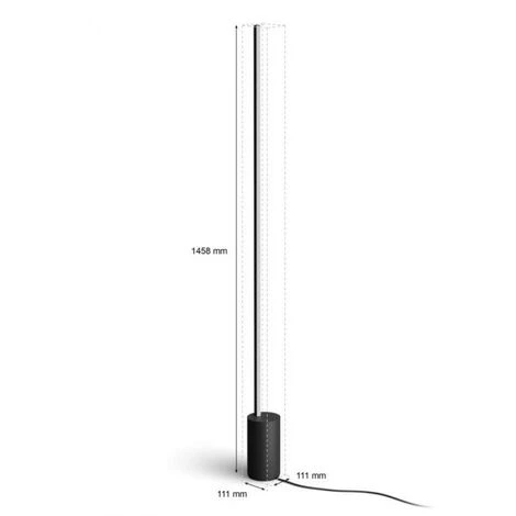 Complétez votre décoration intérieure avec le design noir fin et élégant du lampadaire gradient Signe, qui mélange plusieurs couleurs pour peindre vos murs avec une nuance de lumière unique. SPÉCIFICATIONS -Couleur noire -Matériau : aluminium – Longueur du câble : 2 m -Hauteur 145,8 cm -Longueur 11,1 cm -Largeur 11,1 cm -Durée de vie jusqu’à 25 000 heures – Technologie des ampoules LED 24 V -Couleur de la lumière 2000-6500 K Hue White Ambiance de la couleur -Tension secteur 220-240 V 50-60 Hz -Luminaire à gradation Oui -LED Oui -LED intégrée Oui -Classe énergétique de la source lumineuse LED intégrée -Nombre d’ampoules 1 -Complet avec lampe de puissance 29 -Code IP IP20 -Classe de protection II – double système d’isolation -Source lumineuse remplaçable Non -Rendement lumineux à 2 700 K (réglage par défaut) 1 800 lm -Puissance lumineuse à 4 000 K 2 550 lmColor: Noir