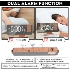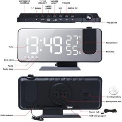 FUIENKO Réveil à Projection 180 °, Facile à Utiliser, 3 Niveaux De Luminosité, 5 Min, USB
