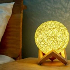 MINKUROW LED, Lampe De Chevet, Lampe D’Ambiance De Chambre En Rotin Et Bois, USB Rechargeable