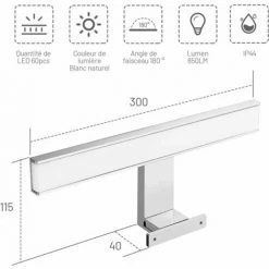 NAXUNNN Lampe De Miroir Pour Salle De Bain 5500k, Lampe LED Murale 6w 230v & 650LM De 30cm, IP44 Etanche, Lumière Blanche, à Economie D’Energie