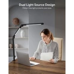 RHAFAYRE Lampe De Bureau à LED, Lampe D’architecte De Bras Pivotante à Double Lumière Avec Pince, Lampe De Table De Bureau à Commande Tactile Avec 4 Températures De Couleur Et Luminosité Réglable