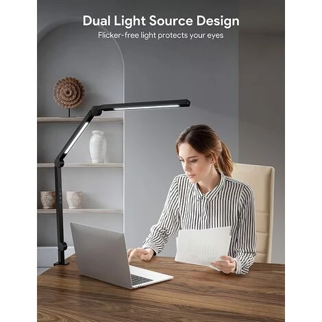 【Double Source de Lumière et Protéger les Yeux】 Architecte Swing Bras Desk Lampe de bureau avec une double source de lumière, qui allume uniformément l’ensemble du bureau de bureau. Cette lumière de bactérie avec le clip est de 12W puissance, non fluide, sans éblouissement, pas de rayons ultraviolets, protégeant les yeux des personnes qui travaillent et lisent longtemps de la douleur.