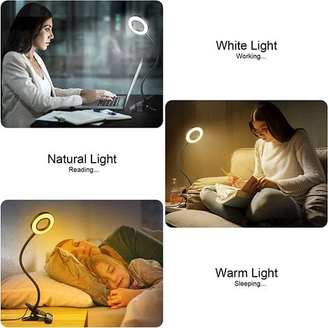 3 modes d’clairage et 10 niveaux de luminosit rglables : la lampe pince offre une lumire froide, une lumire chaude, une lumire naturelle et 10 niveaux de luminosit (10 % 100 %), idale pour les tudes, les travaux manuels ou la lecture.