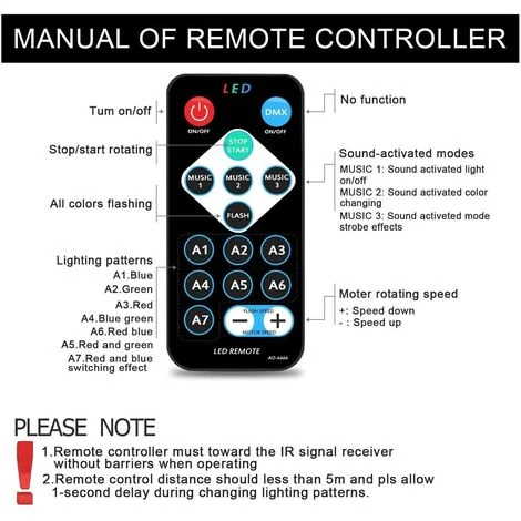 【3 modes musicaux/mode automatique/mode flash】 1) Mode musical : la lumière disco va changer la vitesse avec le rythme de la musique, changer la couleur ; 2) voiture : changer les couleurs automatiquement ; 3) flash : livré avec programme stroboscopique, peut également régler la vitesse stroboscopique.