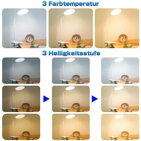 ăLampe avec Pince et Bras Flexibleă: Le bras 35cm peut ĂȘtre pliĂ© Ă 360 degrĂ©s librement, de sorte que la hauteur et la direction de la lumiĂšre peuvent ĂȘtre ajustĂ©es de maniĂšre flexible pour toujours trouver la position idĂ©ale. Le bras mĂ©tallique est flexible, mais maintient en mĂȘme temps sa position. GrĂące au clip, il est trĂšs appropriĂ© pour la fixation sur la table de chevet, le lit, le bureau, les Ă©tagĂšres diverses et le clip peut ĂȘtre facilement ouvert de 3 Ă 5 cm.