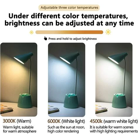 【3 modes d’éclairage et réglage de la luminosité】Cette lampe de bureau verte dispose d’un interrupteur tactile, qui peut commuter librement 3 modes d’éclairage : lumière blanche, lumière chaude et lumière blanche chaude. Ces 3 couleurs claires conviennent à différentes occasions.